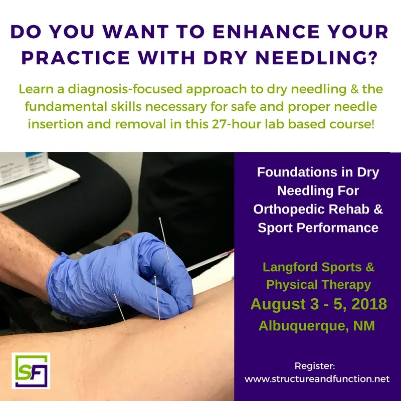 Special No Joiner Fee. Functional Dry Needling Level 1 or equivalent This 6-week faculty-led online course is designed to explore how Functional Dry Needling FDN is applied in. Foundations in Dry Needling for Orthopedic Rehab and Sport Performance SFDN1 In this 27-hour lab-based course the clinician will learn a diagnosis-focused approach to dry needling.