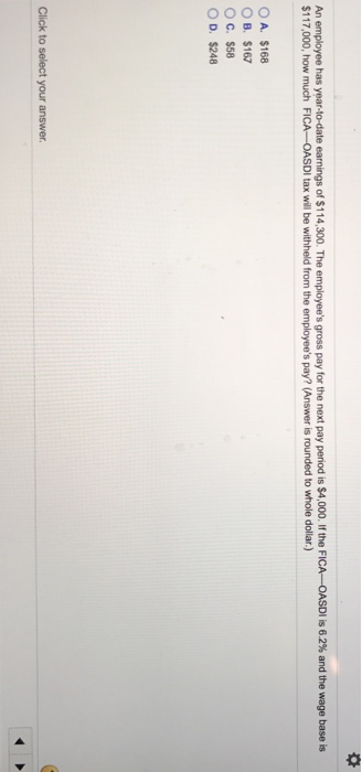 Solved An Employee Has Year To Date Earnings Of 114 300 Chegg Com